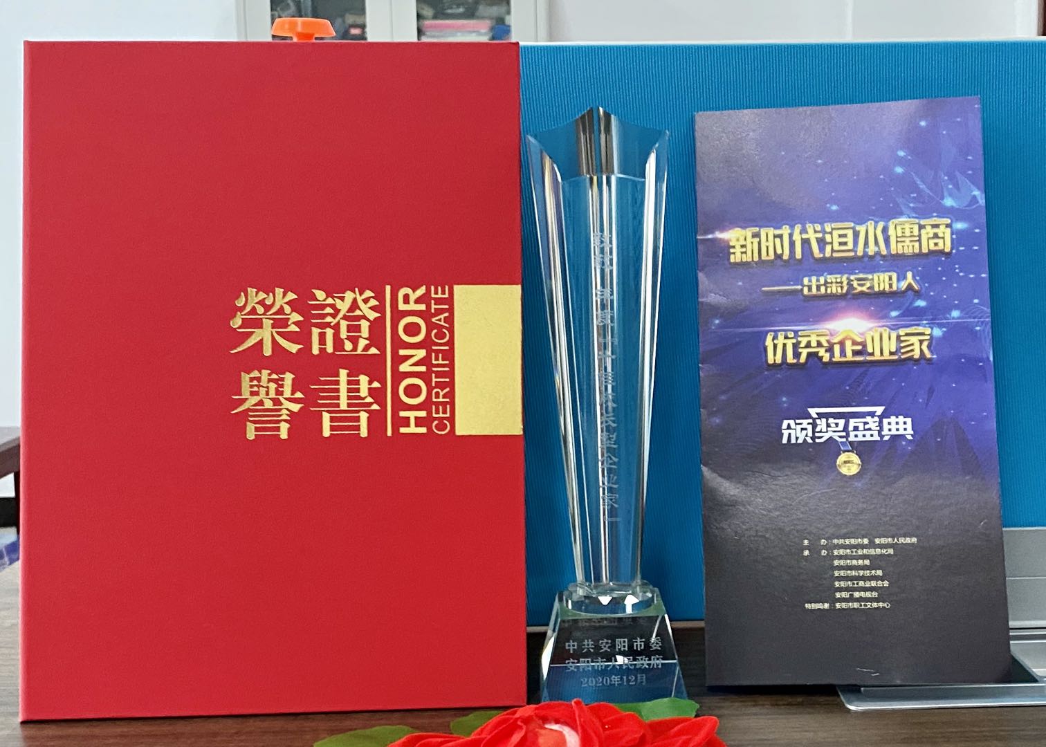 我司董事长邓明利先生评选为年度“十佳成长型企业家”,荣获“新时代洹水儒商——出彩安阳人”称号。
